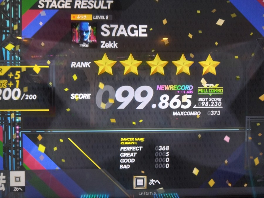S7AGE ふつうLv8 前記録98.230から、グレ5フルコンボ、スコア1.635の大伸び!…前記録のスコア、悪メンテの時に出したな?