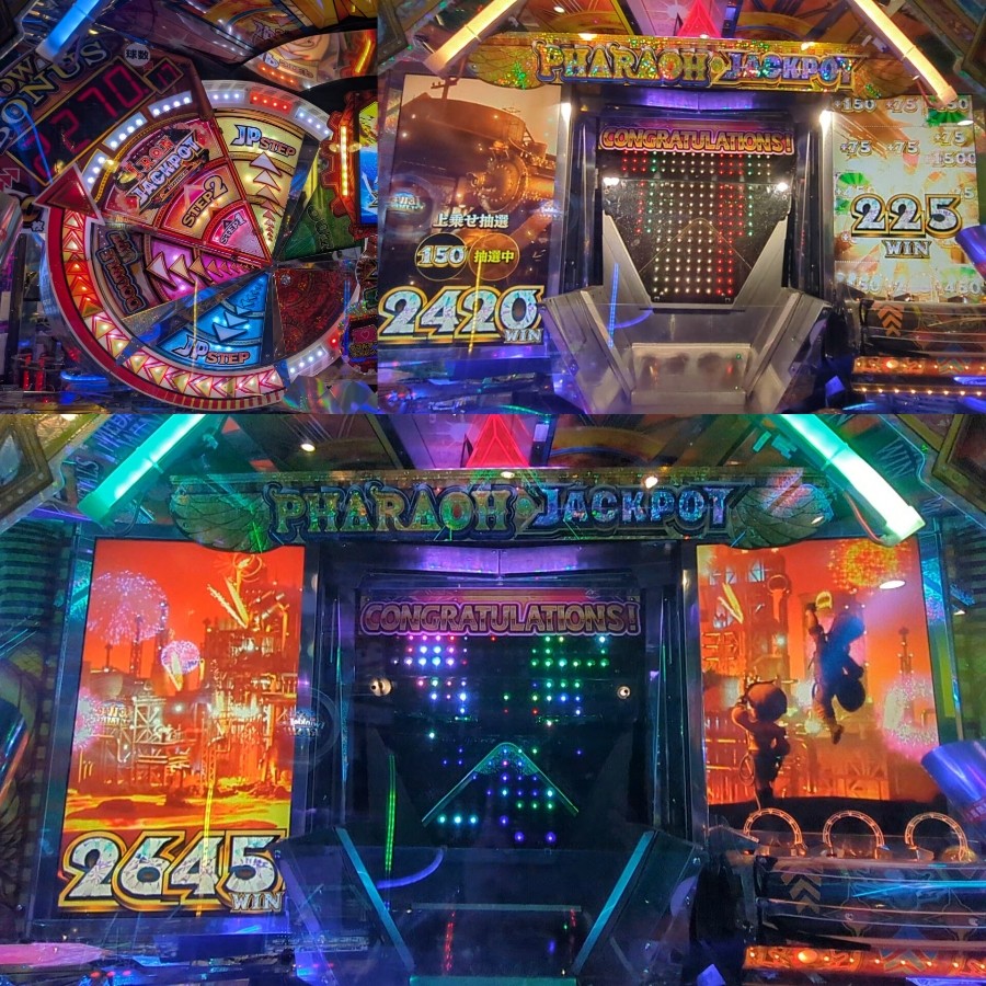 5000枚超えのファラオJPが崩れた直後の自分のアイアンJPCで... JPCが結構続いて、見事JP獲得!! 黄色と青のJPステップが良い仕事してくれました!! JP枚数はJP2270枚+上乗せLv3(150+225)の2645枚!!