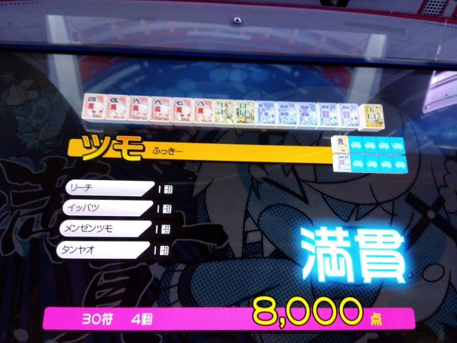 本日の東風は、2-1-4-1でした。。。 アガれる時にかぎって、ドラが少ない??? 赤あり麻雀なら初めにドラが7枚あるはずなのですが、 どこに行ったのでしょう(๑•﹏•) 追伸、そして裏ドラものらず。。。