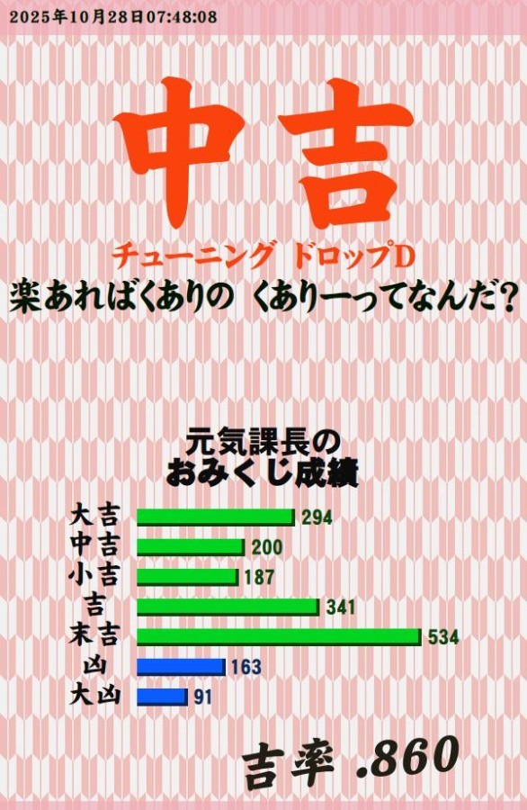 おはようございます。 今日のおみくじ!ドロップDのチューニングでくありーの意味がw https://p.eagate.573.jp/gate/e/toomikuji.html?from=article