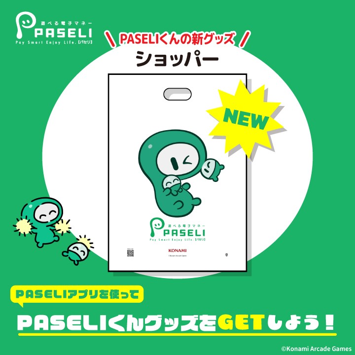 新しいPASELIくんグッズをゲットしよう! 11/14(金)、15(土)コナミアーケードゲームスブース物販コーナーで3,000円以上(税込)PASELIアプリで決済すると新規描き下ろしPASELIくんショッパーが貰えるよ! ぜひPASELIコーナーへ遊びに来てね! 詳しくはこちら↓ https://p.eagate.573.jp/game/event/amusementexpo/2025/booth/index.html#paseli