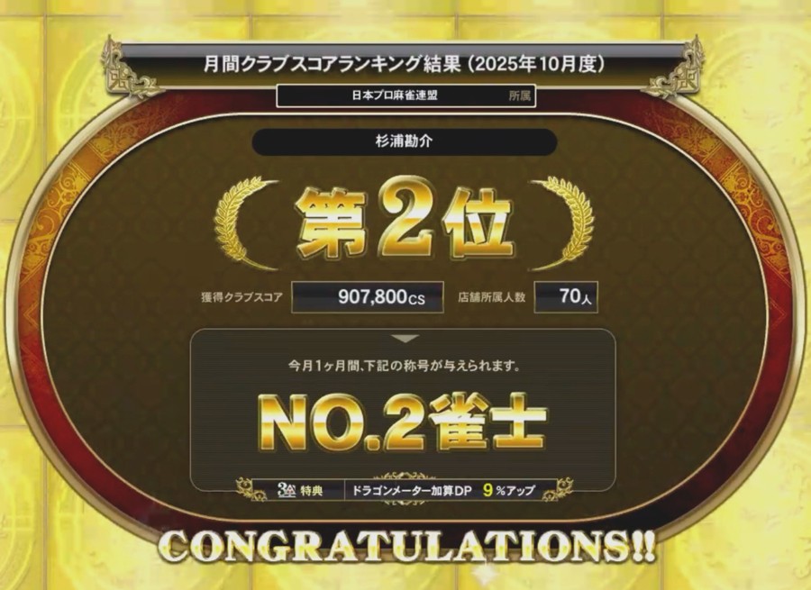 10月はなかなか好成績でしたが、沢崎プロがブッチギリで2位フィニッシュでした! 今月もこの調子で頑張ります✨✨ 皆様対戦よろしくお願いします!! 本日はこれから三麻と半荘を少し打ちます🀄️