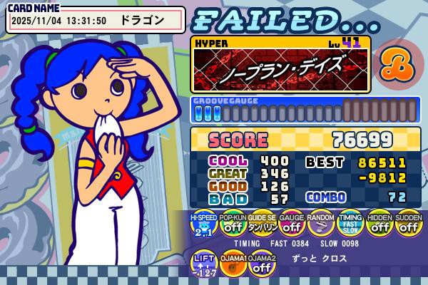 ハイスピを間違えて轟沈した。 ミサキ「確認はしっかりしなさい。」 リンリン「ほんそれ。確認不足が招いたとしか言えないしね。」