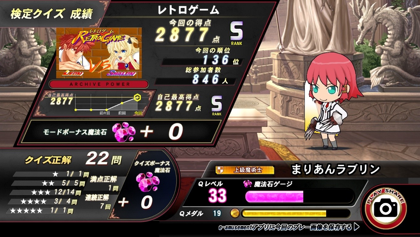 レトロゲーム検定2回目のプレー。この回は自己ベストを更新して Sランクを記録。