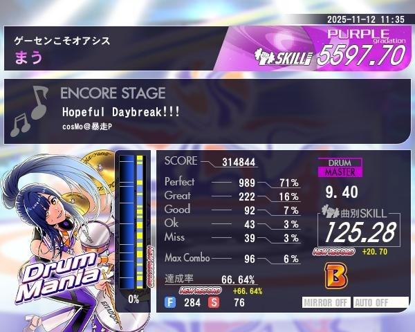 この日の頑張ったやつ♪(ドラム) 初見クリア記念!