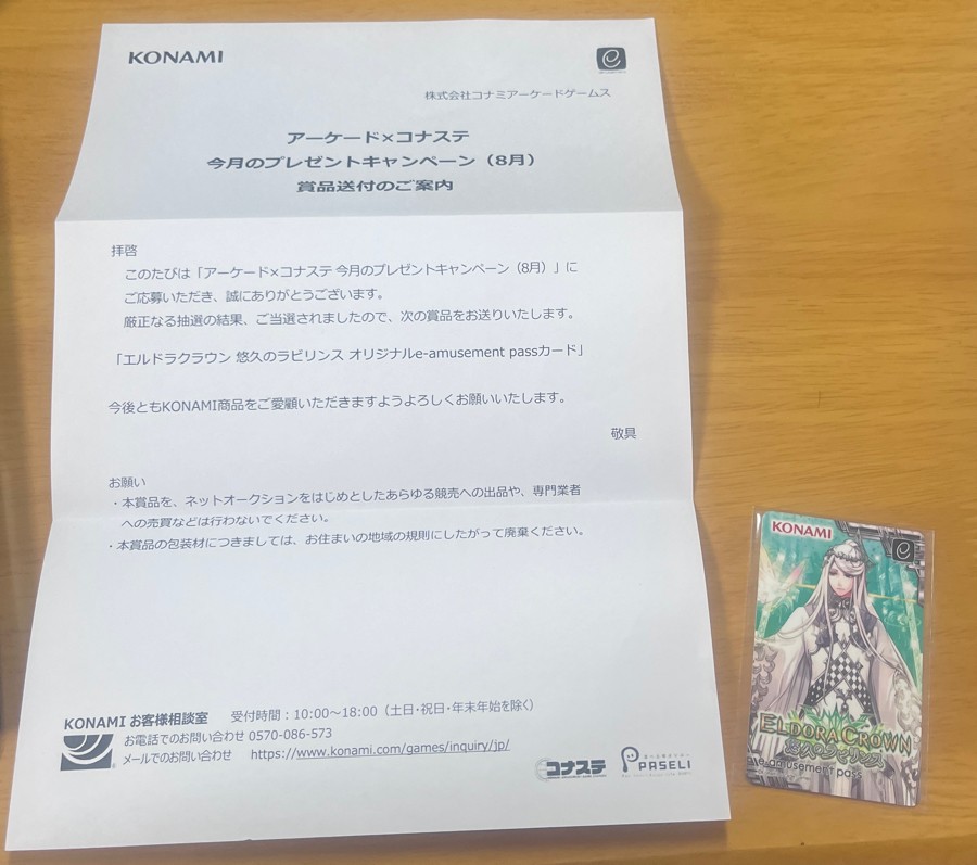 今月のプレゼントキャンペーン8月分当選
