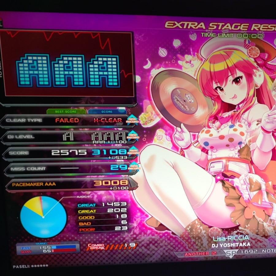 Lisa Riccia穴は簡単でした 初見エクハは無理だったけど (墓譜面はAA取れたけどクリアが見えない)