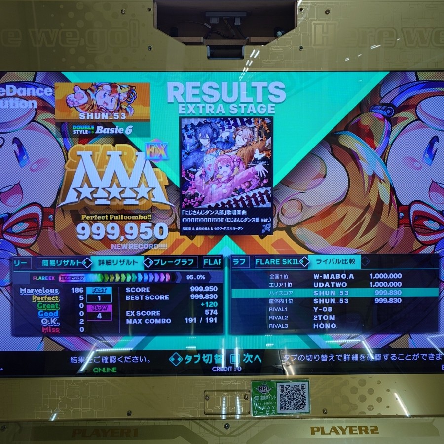 昨日の捕獲③ もう一つの新曲。 6箱で、4分のみだけど、ワールド曲らしい譜面配置で面白い。 で、ちと、手強い(苦笑) 今日分の力の半分使えばMA行けそうだったけど、それだと他の仕事にならんから、今日はこの辺で(苦笑