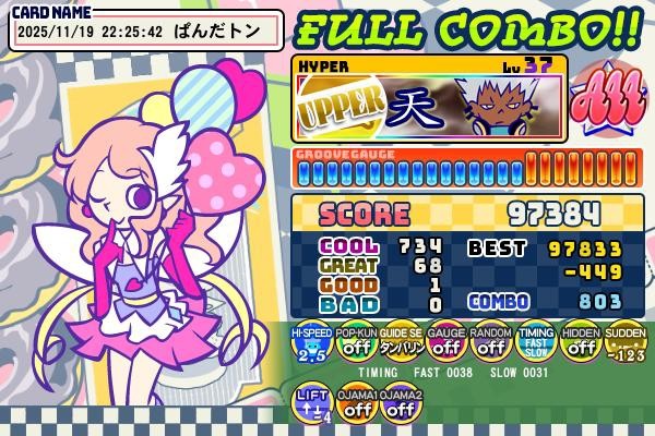 曇天UPPER H フルコンAAA。もう少しでパフェやったのにな。