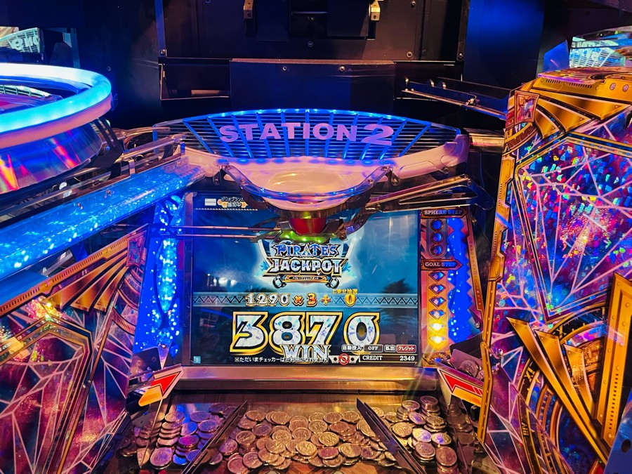 2025年11月26日 JACKPOT第194号!! PIRATES JACKPOT 1290×3 3870 WIN スナイプなので上乗せナシ 開凸から1時間以内にJACKPOT GET! 1・3・3で赤の3倍に入って、傾斜強いからすぐ決まりました!! 元々預けもそんなになかったから、今回は勝ち逃げ!