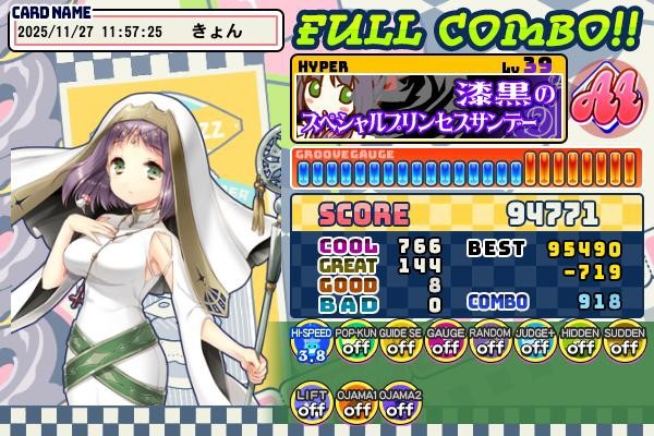 漆黒のスペシャルプリンセスサンデーH とりあえず再フル。EXもいつか出来るようになりたいな〜
