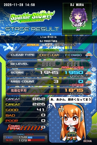 リサリシアHフルコン!Lv10のフルコンは5曲目!リサリシア移植はずーっと待っていたからフルコン狙いました。
