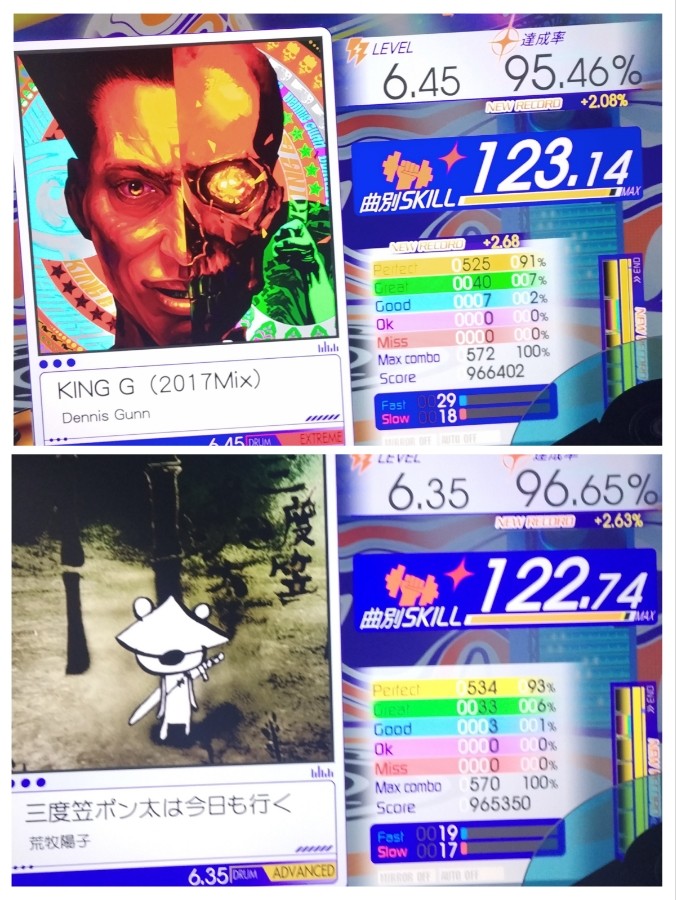 6.0〜6.49ゴールデンクラウン計画。 すんごい久しぶりに撃破できました。残り4曲。 KING∶高速9連dkdkが全く出来なかったが、 ふとつながるようになっていた。パフェは低いが!! ポン太∶偶々クリアしてない事に気が付いた。低速だったので ゴリ押したが、逆タムマジ勘弁して!