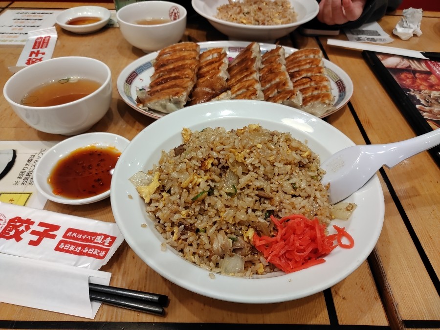 焼豚チャーハン&メガ餃子半ぶっこ😋