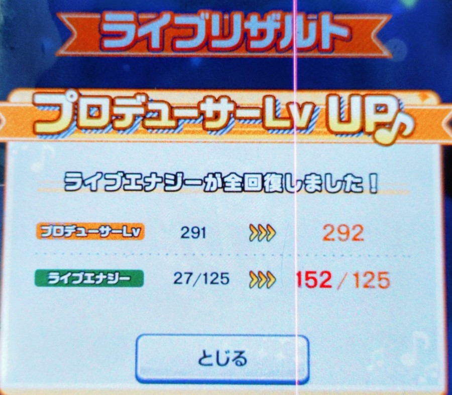 ときめきアイドル 2025年12月18日午後12時(正午)頃、レベル292に上がりました レベル291から1レベル上がるのに37日12時間ほどかかりました。