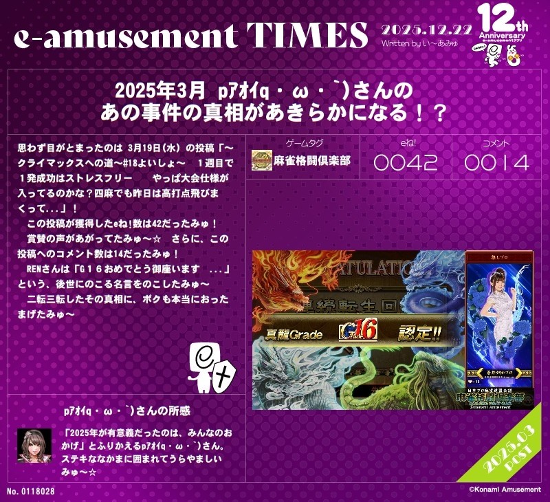pアオイq・ω・`)さんのe-amusementアプリ投稿詳細