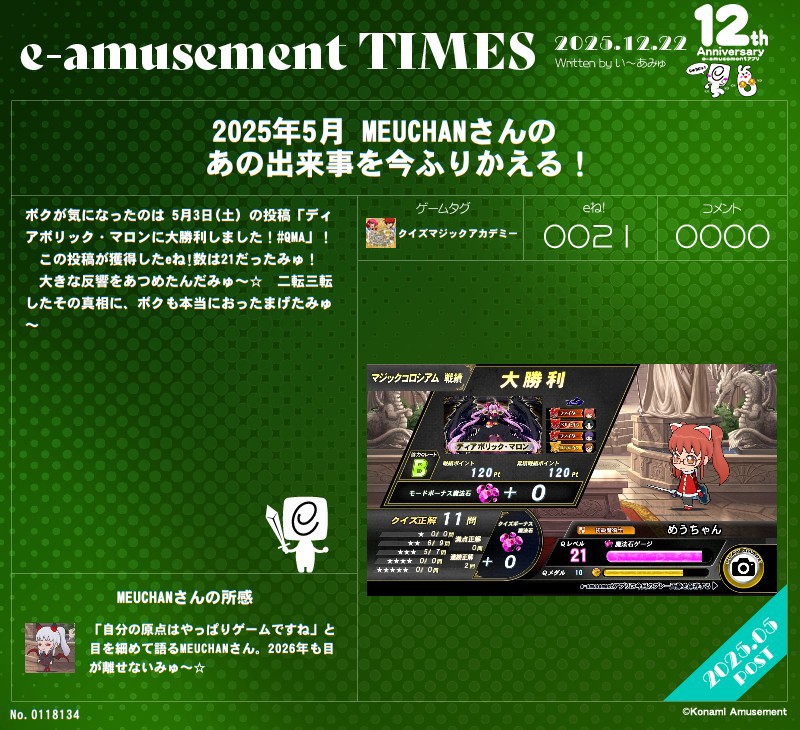 5月、ディアボリック・マロンに大勝利した甲斐があったそうですな(´ω`) #いーあみゅ新聞