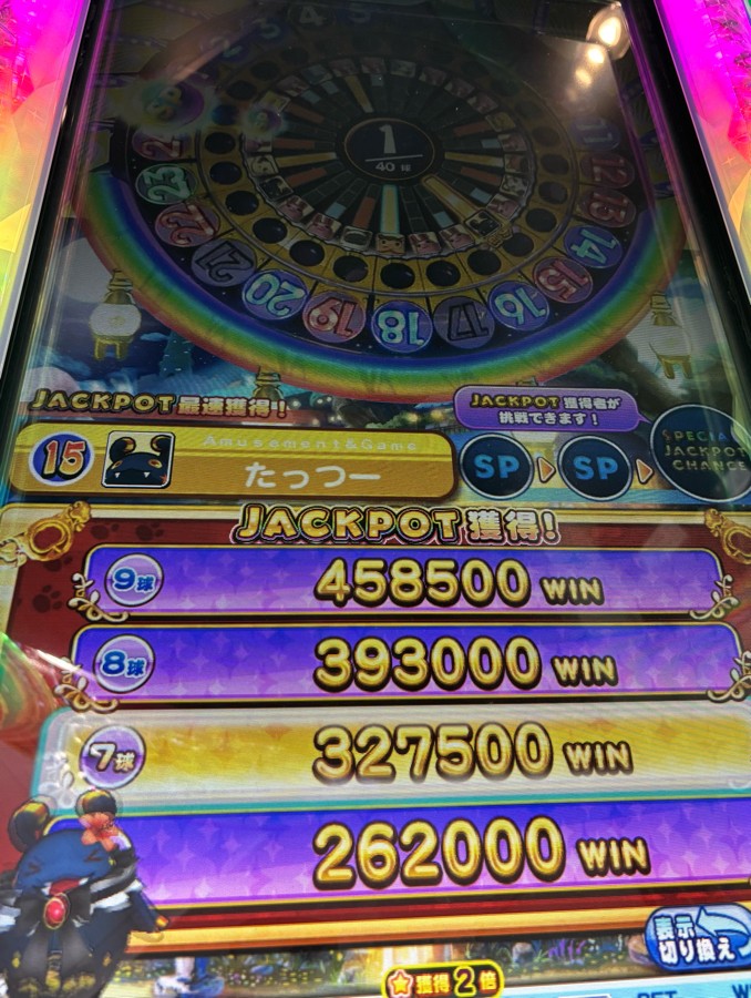 他の機械でエラーになりメインカードの認証が外せなかったのでサブで遊んだ結果 7球JP!! その後メインで遊べるようになったので3ワンダーぐらいやりましたが全敗でした笑