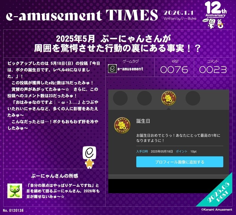 ぷーにゃんさんのe-amusementアプリ投稿詳細