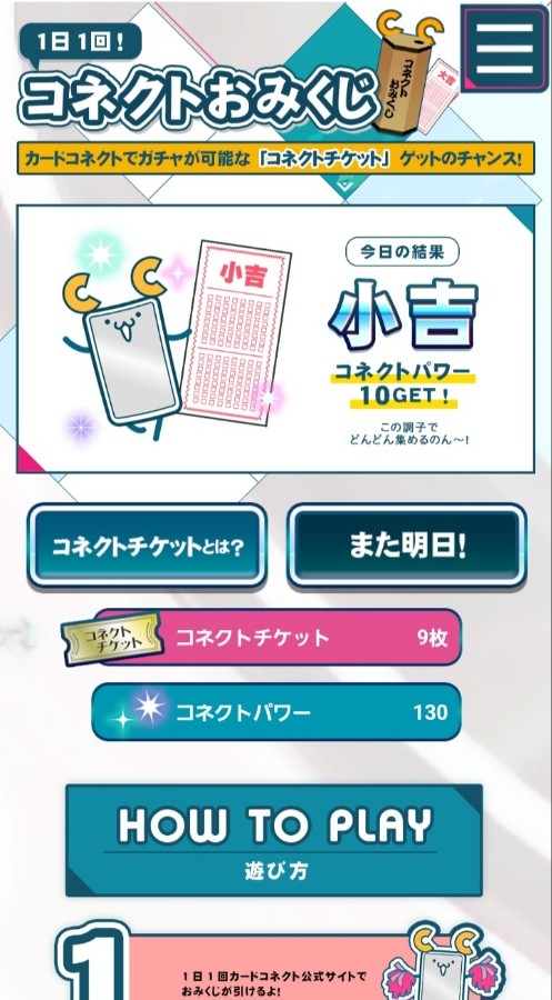 1/11(日) カードコネクト コネクトおみくじ 今日の結果 小吉