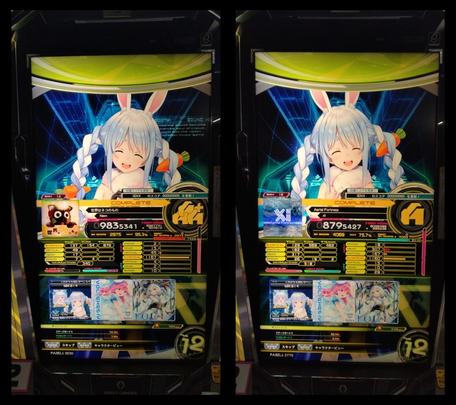 【#SDVX】 この2曲は結構スコア伸ばした。 ミスするとかなりの命取りになりそう…。 (通算プレイ28回)