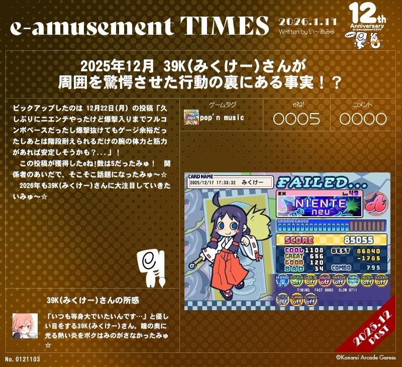39K(みくけー)さんのe-amusementアプリ投稿詳細