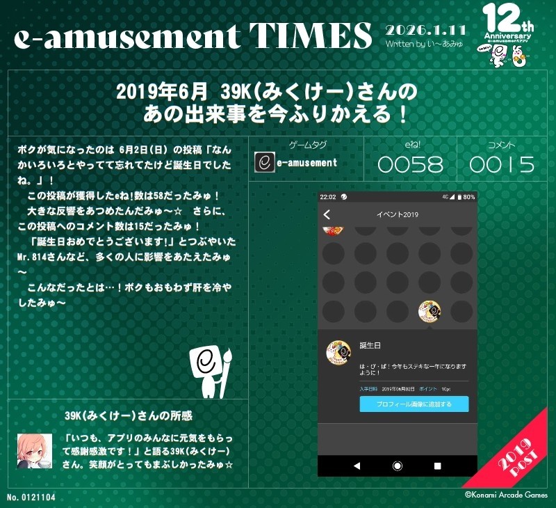 選ばれたのは2019年のバースデーでした。実は元タイトーのCOSIOさんと誕生日同じなんだよね。(前にもこのネタ使った気がする)