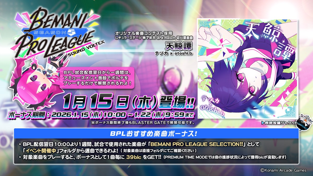 †△<今日も手に汗握る戦いでした…! 3rd matchで登場した楽曲は、明日1月15日から登場します! *△<プロたちがプレーした楽曲がブロックボーナス付きで遊べる、おすすめ📂も更新されるぜッ! 同じ楽曲をプレーして、プロの凄さを体感しようぜ~ッ! http://eagate.573.jp/game/sdvx/ #SDVX #BPLS5