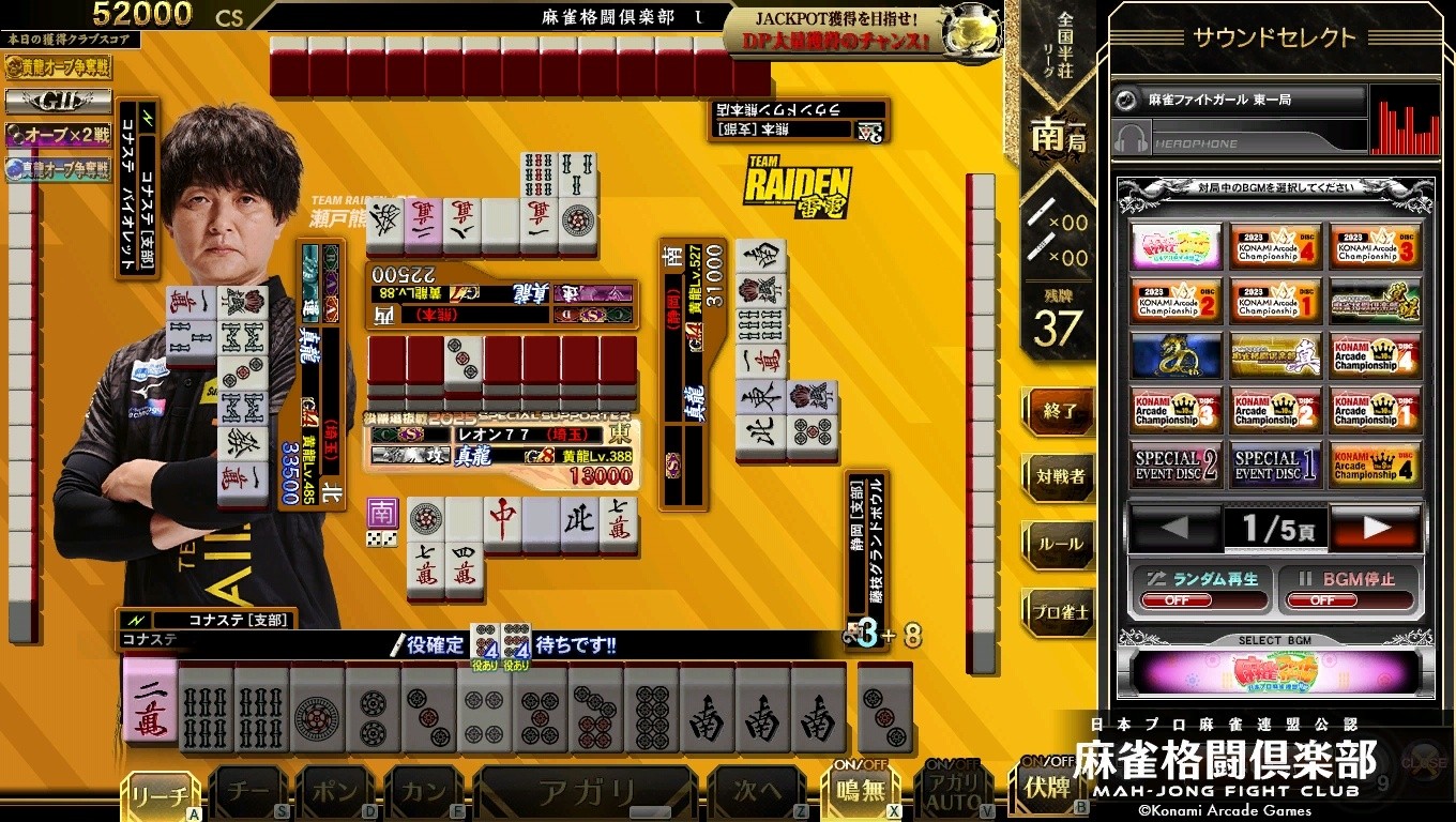 ラス目で、迎えた親番。 巡目が早ければ6筒入れての一気通貫に変わって〜のリーチと したかったが ↓ ここは、押さえつけ込みで曲げ! ↓ そして…
