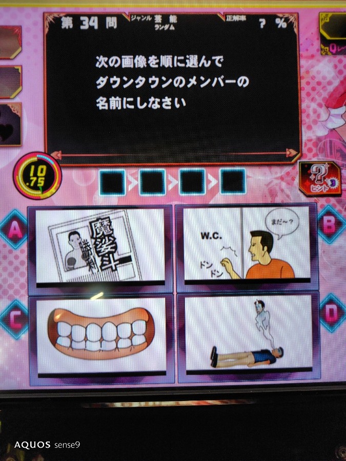 超久々の100チャレ(甘口)。これは所謂「実にくだらない問題」ですが、ちょっと笑ってしまった(笑)。 C→B→A→D 歯未だ魔裟斗死→浜田雅功 浜田さん本人がこの問題見たらどう反応するでしょうか(笑)⁉️。