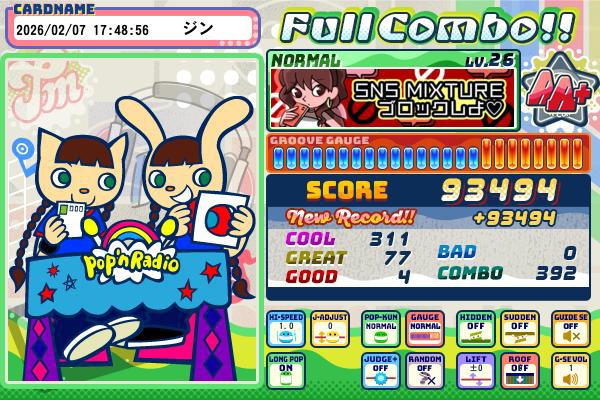 ノースピサブカードでSNSミクスチャーをやってきました。先ずはN譜面から。