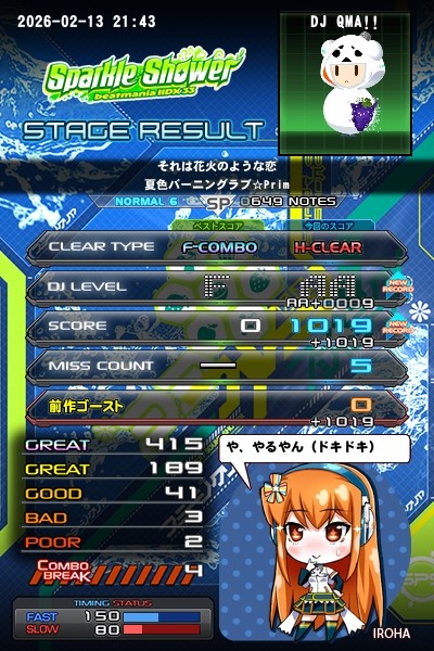いったんQMA離れて弐寺やりました ☆6それは花火のような恋 イチオシ埋めで選曲しました