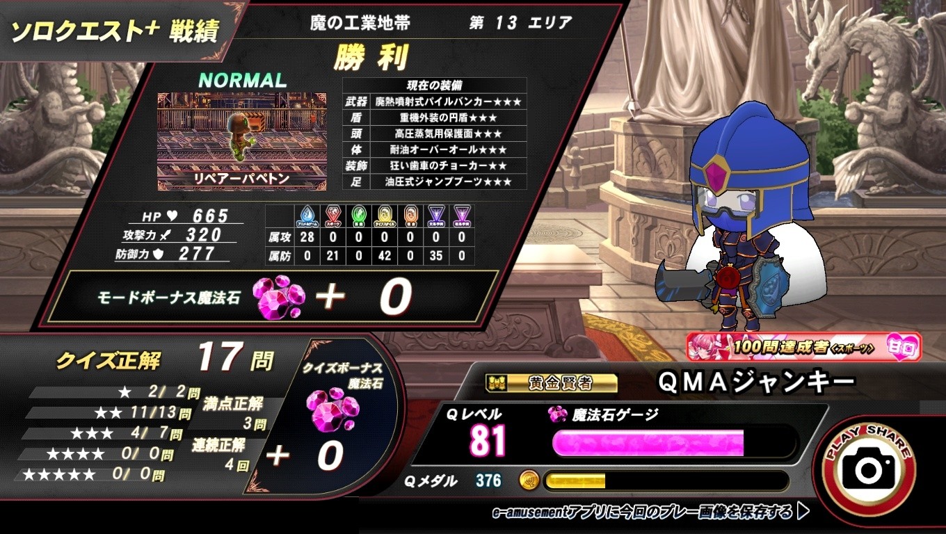 ソロクエスト+ NORMAL13エリア、最後の問題までもつれましたが、なんとか勝てました
