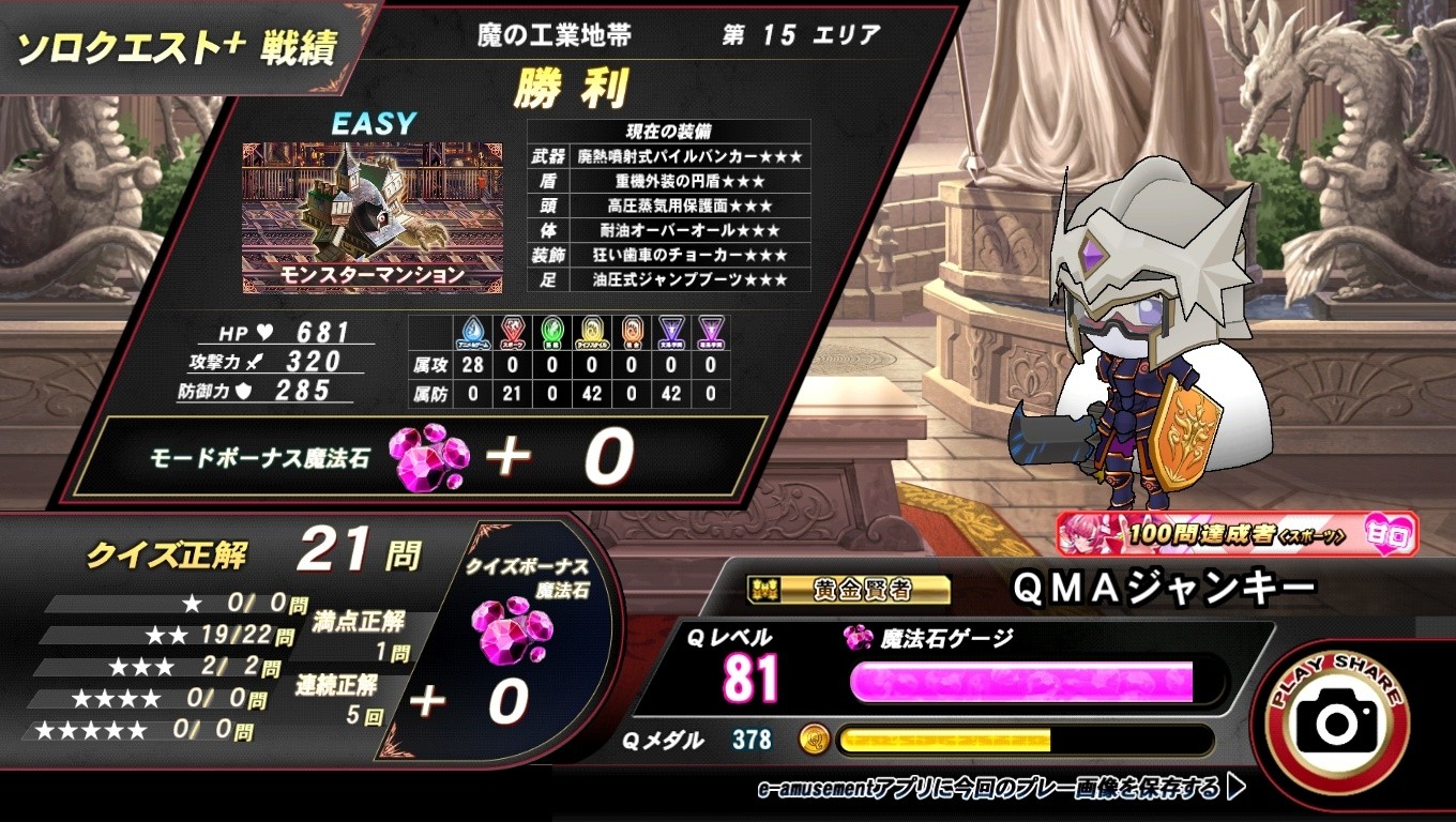 EASY15エリア 残り5問でジャンル固定魔法使われ、今度はジャンル変更魔法使ったりして、ギリギリでしたが勝てました