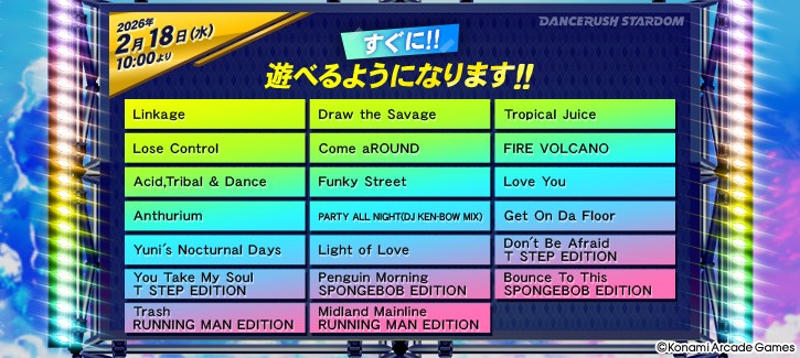 【あの名曲たちがすぐに遊べる!!】 2月18日(水)10:00より、こちらの20曲がすぐに遊べるようになります! 名曲揃いのラインナップをまだ遊んだことがないキミ! #DANCERUSH_STARDOM 屈指の名曲たちを堪能しよう!! #ダンスラッシュ #BEMANI