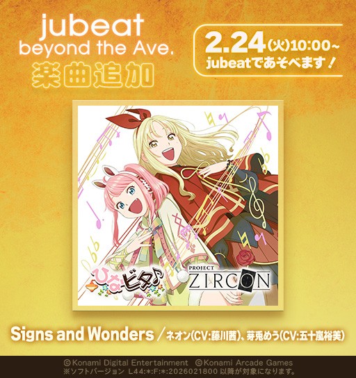 ◤ ̄ ̄ ̄ ̄ ̄ ̄ ̄ ̄ ̄ ̄ ̄ ̄ ̄ ̄◥ 2月24日(火)10:00より楽曲追加! ◣______________◢ #jubeat で ひなビタ♪×PROJECT ZIRCON コラボ楽曲『Signs and Wonders』が あそべるようになります! 是非お楽しみください♪ #ひなビタ♪ #ZIRCON