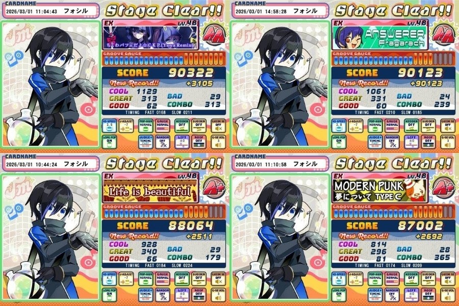 Lv48フォルダで新規クリア達成。 スコアもランクAAが増加中。