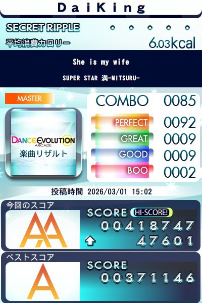 今日のダンエボ She is my wife (MASTER) 遂にAA乗りました٩(ˊᗜˋ*)و♪