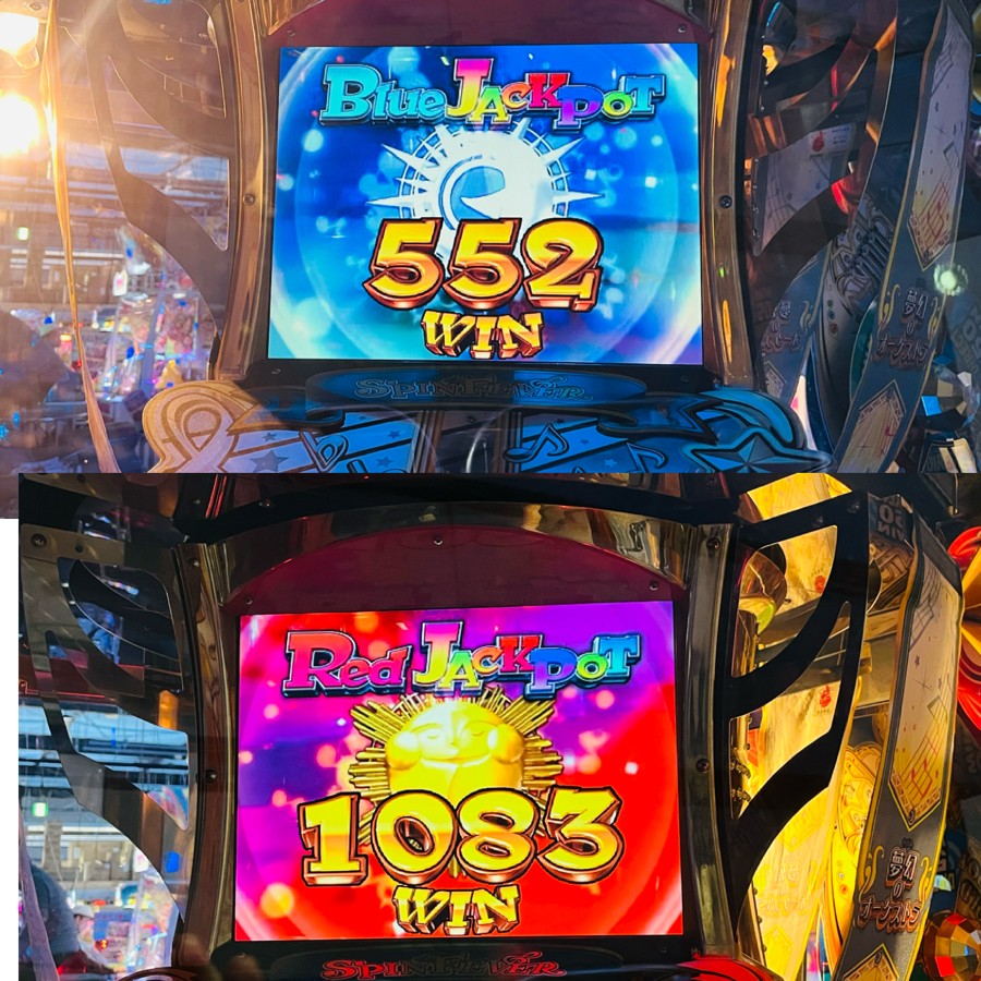 2026年2月26日 JACKPOT第55号!! BLUE JACKPOT 552 WIN JACKPOT第56号!! RED JACKPOT 1083 WIN ヴィーナスファウンテンのあと、スピンフィーバー3でボールが多い台を発見したので、プレイし、確変中のFGでBLUE JP獲得後続けてRED JPと2連続 JP獲得!!