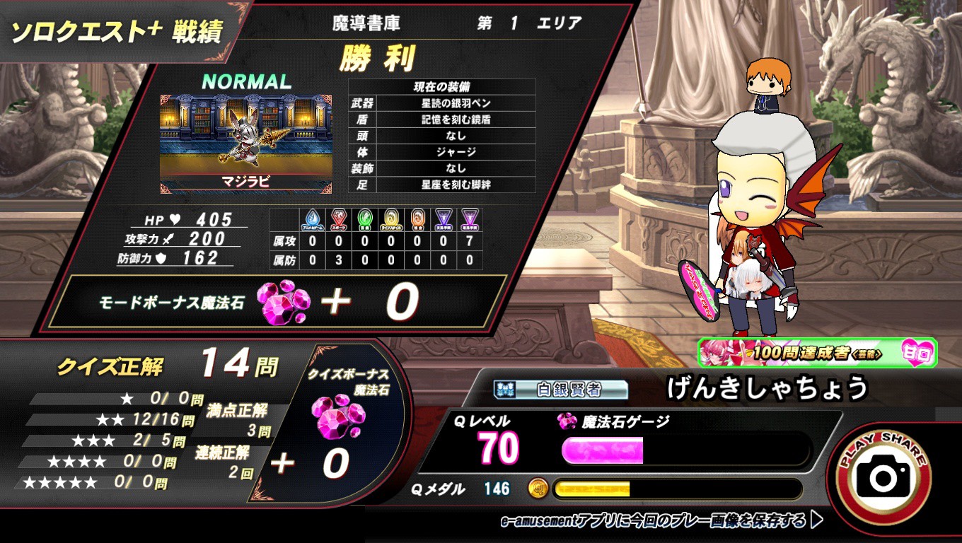 サブでソロクエスト+⚔️の魔導書庫📖のnormalの第1エリアをクリアし、ユウのキャラうちわ2をゲット。