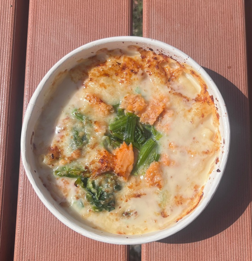 セブンイレブンの新商品、鮭とほうれん草のグラタン