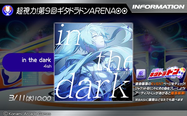 【超視力!第9回 ギタドラドンARENA⦿⦿】 3/11(水)から「超視力!第9回 ギタドラドンARENA⦿⦿」がスタート! EVENTの「超視力!ギタドラドンARENA⦿⦿」ページをチェック♪ プレビューから推理してプレーすると譜面解禁! ※BASIC譜面は最初から遊べます #GITADORA