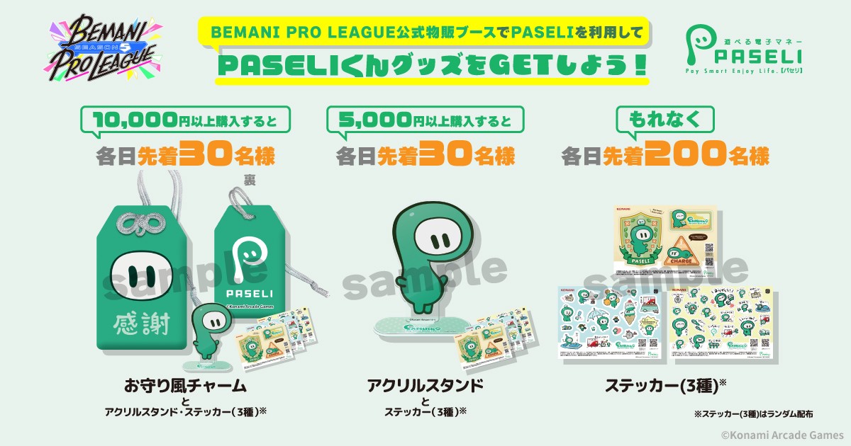 / #BPLS5 FINALS会場で PASELIくんグッズをゲットしよう! \ BEMANI PRO LEAGUE公式物販ブースで PASELIを利用してPASELIくんグッズをゲットしよう✨ ⚠会場でのPASELIのご利用にはPASELIアプリが必要です。 詳しくはこちら↓ https://p.eagate.573.jp/game/bpl/season5/event/finals/goods.html#paseli