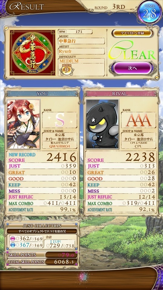☆9中華急行 Storm Busterと合わせて34点スコア更新しました 今回はゲームサファリ池袋店でのQMAHG筐体行脚と合わせる形で行きましたが、リフレシアやるだけのために池袋に行くのは交通費考えると厳しいことは確か 次にリフレシアやる機会作るのは難しいです