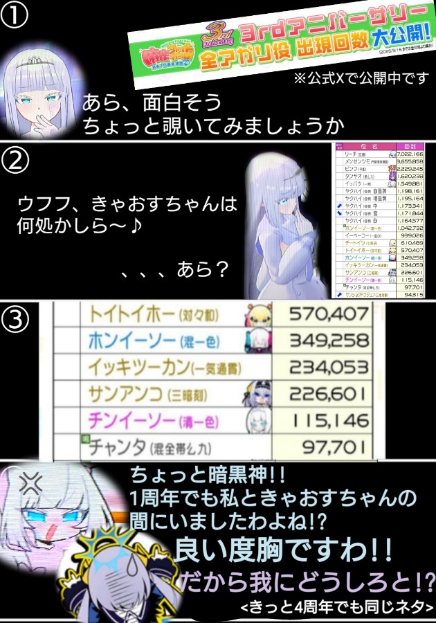 <MFG3周年記念 和了役回数公開中🀄️3時休みの四コマ>
