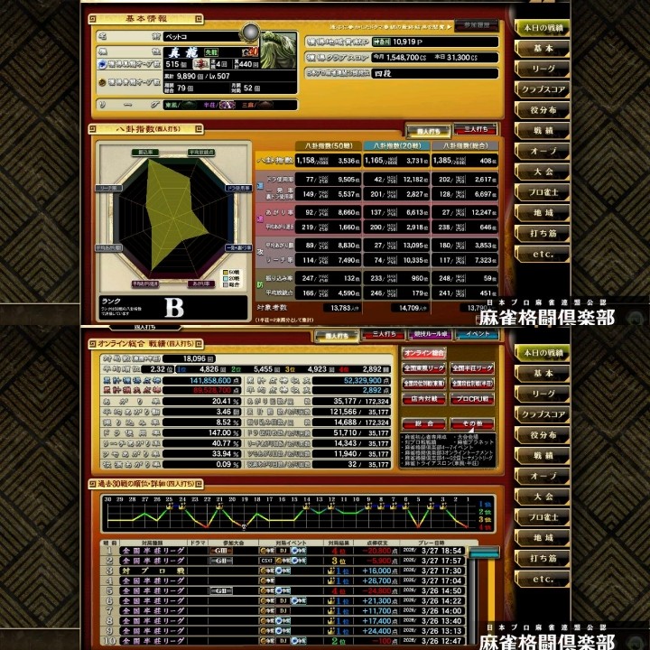 (>_<") 昨日のラス半のラスが本当に痛かった… 今期リーググランプリは此処までですね… orz.. 毎回真珠だけじわじわ減っていく… お疲れ様でした m(_ _)m
