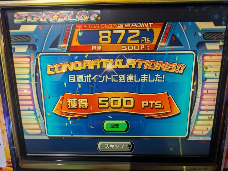 500ポイント達成の裏にうっすらと見えるでしょうか...!? なんとミリオネットのスタースロットで初めて777が揃いました! (マイホのボウリング屋さんではないケド...!) こういうのってちゃんと揃うんですね!!