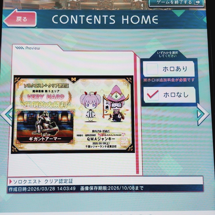 QMAの認定証印字 カードコネクト赤筐体、やはりカードの在庫が無くなったら稼働終了する告知ありました。 白筐体も稼働していました