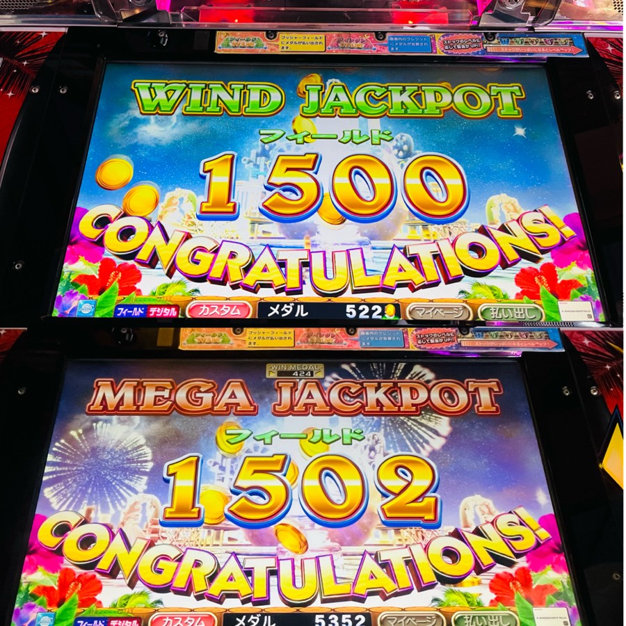 2026年3月27日 JACKPOT第86号!! WIND JACKPOT 1500 WIN JACKPOT第87号!! MEGA JACKPOT 1502 WIN 分裂リーチで777が揃いダイレクトルーレットチャンスの結果、3枚のFOUNTAIN JPCに刺さり、3球ともGREENで 開店から15分で1発JACKPOT獲得しました!! その後もJACKPOTで落ちたボールで、ルーレットチャンスは今度は2枚のVENUS JPCに刺さり、減速タイミング完璧で JPポケットに入り、2連続JACKPOT獲得しました!!