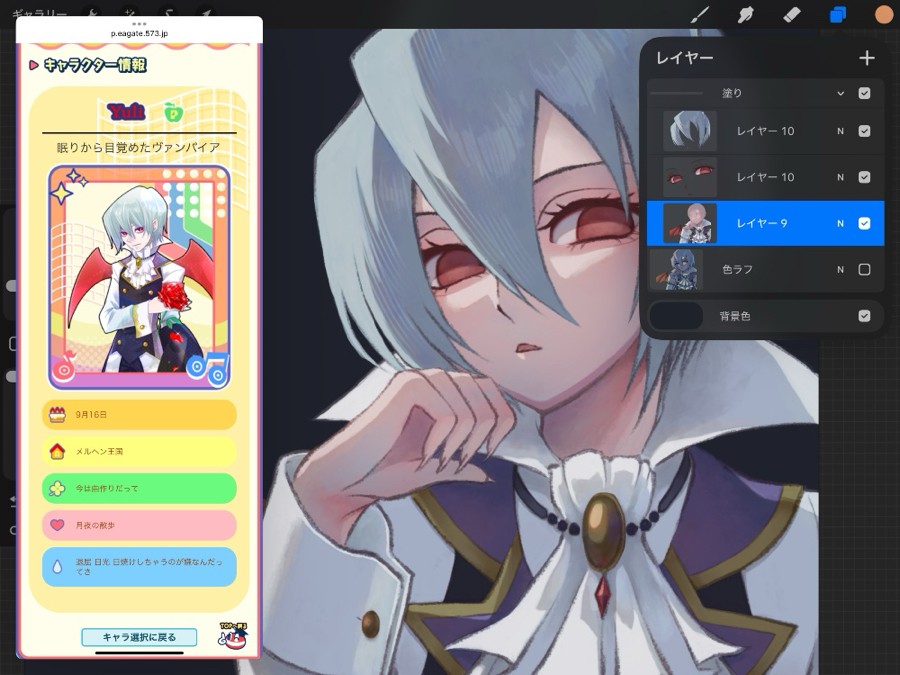 やあ。また性懲りも無く作業途中スクショを置きに来たらしいですよこのひと。 ポップン公式サイトのキャラ検索機能実装、本当に助かります。 (これで資料探しも随分と楽に…) 作業自体は(何か久しぶりにグリザイユやってみたくなって)一通りの色置き→結合迄が一旦終わった所。 (因みに重度の線画清書したくない病罹患者なので、普段は割と一般的なダイレクトに色置いての厚塗りです) 先人達の知恵のお陰で割と綺麗に色が出せて満足。 此処から(やっと)常時資料見ながらいつも通りの厚塗り作業になるんだとか何とか…皆はもっと早い段階から資料しっかり見る習慣付けようね!